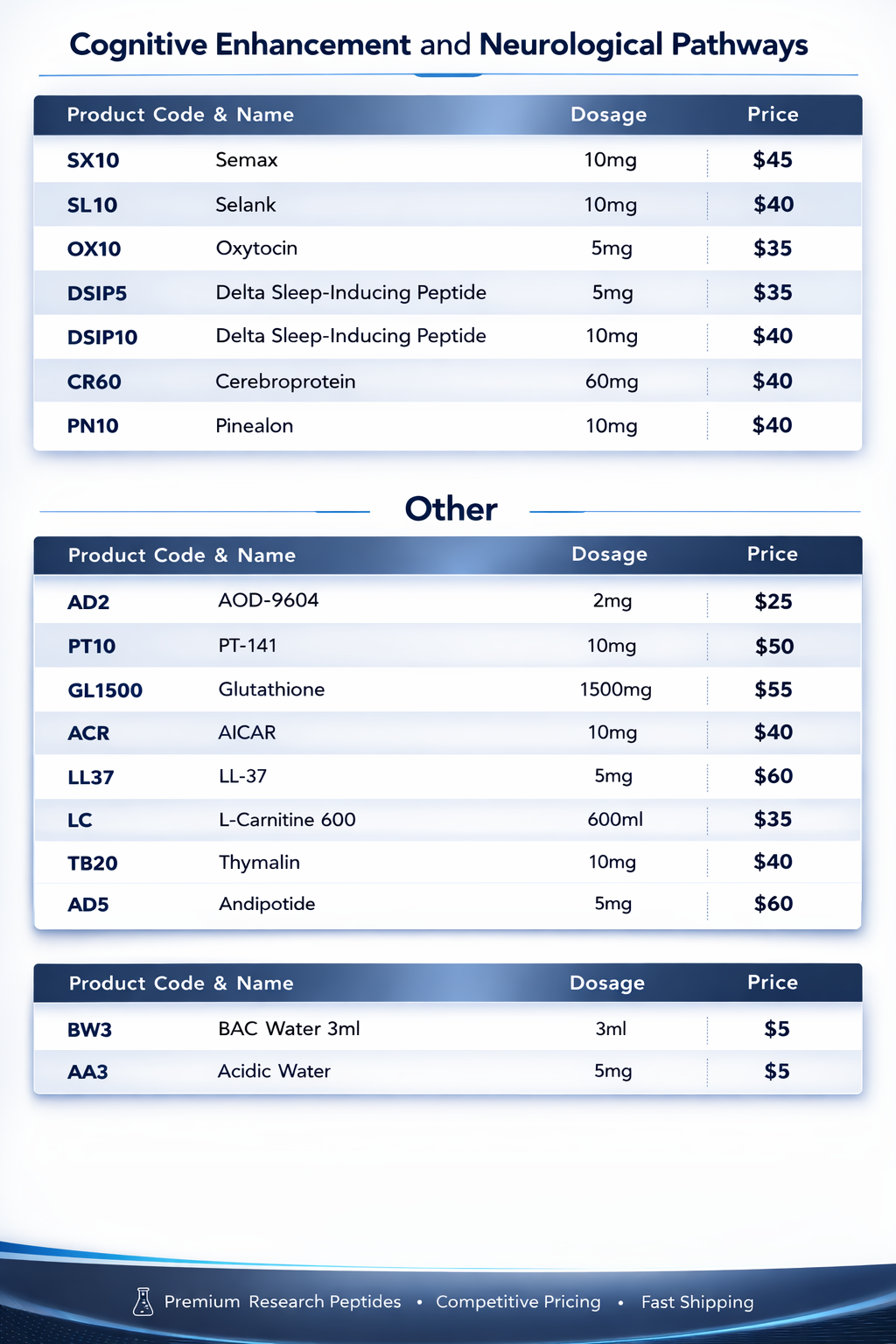 Peptide Product List